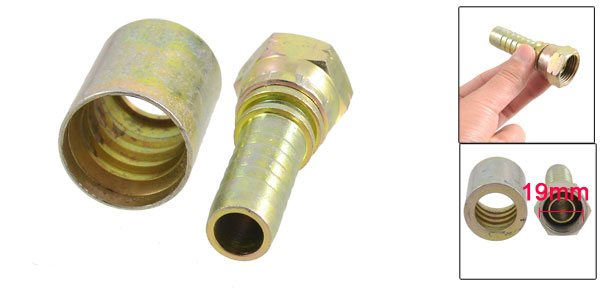 Product Name Oil Pipe Connector Material Metal Thread Size 1/2" PT Female Thread Dia. 19mm Barb End Outer Dia. 15.5mm/ 0.61" Overall Size 68 x 26mm/ 2.7" x 1.02"(L*Max.D) Cylinder Socket Size 40 x 21 x 33mm/ 1.6" x 0.82" x 1.3" (L*Inner D*OD) Weight 173g Package Content 1 x Oil Pipe Connector - Reviews