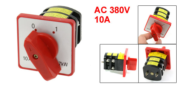 Product Name Changeover Switch Model No. HZ5-20/4 Ui 380V Ith 10A Rated Voltage(Ue) AC 380V Power AC 7KW Positions 1-0-(on/) Terminal Number 8 Screw Terminals Body Diameter 42mm / 1.7" Overall Size 58 x 58 x 85mm / 2.3" x 2.3" x 3.4"(L*W*H) External Material Plastic Net Weight 155g Package Content 1 x Changeover Switch