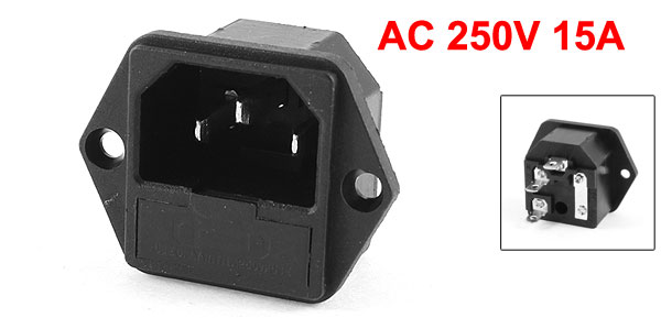 IEC 320 C14 Male Plug Inlet Panel Socket Connector 15A 250V w Fuse Holder