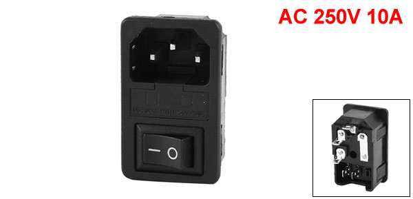 IEC 320 C14 Rocker Switch Fuse Inlet Male Power Supply Connector AC 250V 10A