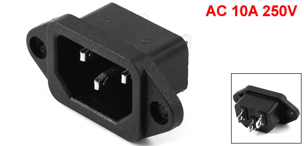IEC320 C14 3 Terminals Inlet Male Power Plug Adaptor 10A AC 250V