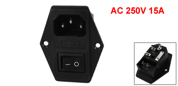 IEC320 C14 Black Rocker Switch Power Inlet Socket Connector AC 250V 15A
