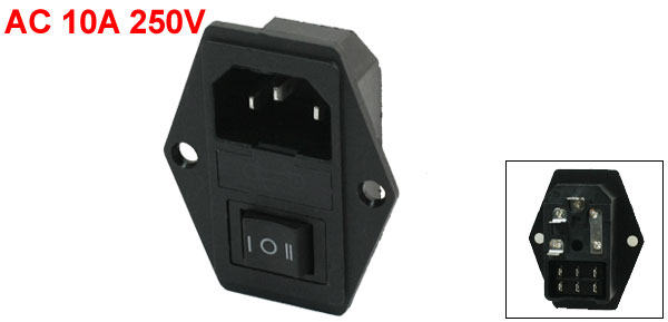 IEC320 C14 Module Plug Fuse Switch Male Power Socket w 6-pin Switch