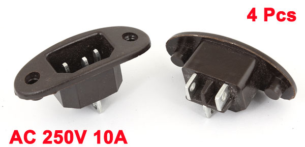 IEC320 C14 Power Cord Socket Receptacle Fuse Holder Coffee Color 250V 10A 4Pcs