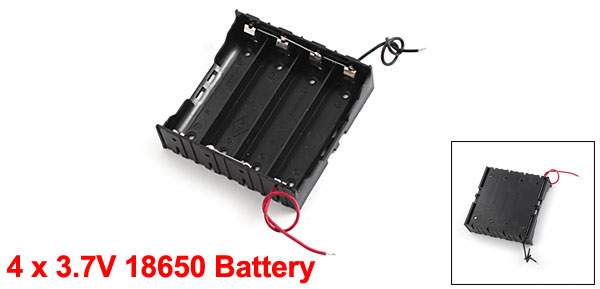 Main Color Black Fit for 4 x 3.7V 18650 Battery(Not Included The Battery) Net Weight 29g Country of Manufacture CHINA Package Content 1 x Battery Holder Material Plastic, Metal Total Size 79 x 77 x 21.5mm/3.1" x 3" x 0.85"(L*W*H) Wire Length 11cm/4.3" Battery Connect Type In Parallel - Reviews