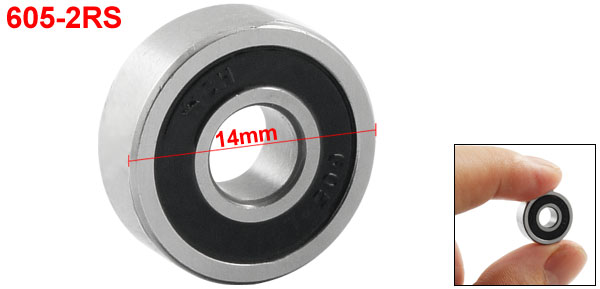 Product Name Deep Groove Ball Bearing Bearing Model 605-2RS Bearing Standard(mm) 5 x 14 x 5 Inner Diameter 5mm/ 0.19" Outer Diameter 14mm/ 0.55" Width 5mm/ 0.19" Material Metal Main Color Silver Tone, Black Weight 4g Package Content 1 x Deep Groove Ball Bearings - Reviews