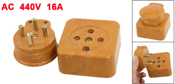 Product Name Socket Type Three Phase Four Wire Power 16A AC440V Socket Size 7.1 x 7.1 x 3.5cm/ 2.8" x 2.8" x 1.4" (L*W*H) Plug Total Size 6.6 x 5.5 x 4.7cm/ 2.5" x 2.2" x 1.8" (L*W*H) Pin Size 6 x 17mm/ 0.24" x 0.67" (D*L) Hole Dia 5mm/ 0.19" Material Metal, FRP Color Orange Weight 252g Package Content 1 x Socket