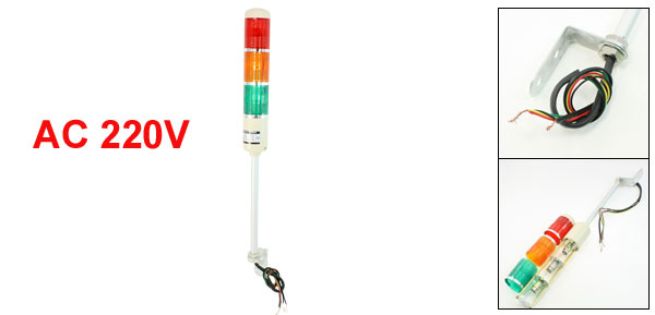 Product Name Industrial Signal Light Type Indicator Light Rated Voltage AC 220V Light Color Red, Orange, Green Material Plastic, Electronic Parts Size 28 x 5cm/ 11"x 2" (H*D) Cable Length 65cm/25.6" Tube Supporter Length 25cm/9.8" Body Color Red, Orange, Green, Beige Net Weight 530g Package Content 1 x Industrial Signal Light