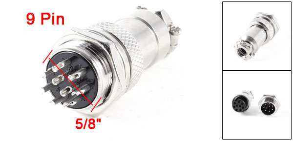 Product Name Aviation Connector Plug Rated Voltage/Current 4A / 125V Opreation Limit Voltage AC 200V.rms Withstand Voltage AC 1500V Insulation Resistence Max. 1500 ohm(DC 500V) Contact Resistance 10 Ohm (DC 1A) Solder Inner Diameter 1.15mm Pin Quantity 9 Pin Mounting Thread Diameter 16mm / 5/8" Total Length 45mm/ 1.8" Material Metal Color Silver Tone Weight 23g Package 1 x Aviation Connector Plug - Reviews