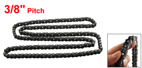 Product Name Roller Chain Link Quantity 160 Pitch 9.525mm/ 3/8" Roller Diameter 5.02mm/ 1/5" Width Bewteen Inner Plate 4.61mm/ 0.181" Pin Diameter 3.52mm/ 0.139" Pin Length 12.01mm/ 0.473" Inner Plate Depth 8.61mm/ 0.339" Plate Thickness 1.33mm/ 0.052" Total Length 152cm/ 60" Material Metal Weight 496g Package Content 1 x Roller Chain - Reviews