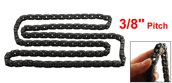 Product Name Roller Chain Link Quantity 160 Pitch 9.525mm/ 3/8" Roller Diameter 5mm / 0.02" Width Bewteen Inner Plate 4.68mm Pin Diameter 3.20mm/ 1/8" Pin Length 12.76mm/ 1/2" Inner Plate Depth 8.49mm/ 0.334" Plate Thickness 1.29mm/ 0.051" Total Length 152cm/ 60" Material Metal Weight 628g Package Content 1 x Roller Chain - Reviews