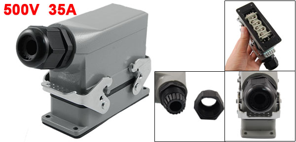 Product Name Connector Contacts Type 6 Pin Screw Connector PG21( for 28mm dia thread) Working Voltage 500V Working Current 35A Anti-fire Class V0 ( according to UL 94) Temperatuer Range -40°C to +125°C Main Material Metal, Ceremics Main Color Gray Mounting Size 10.3 x 3.2cm/ 4" x 1 1/4" (L*W) Overall Size 15.5 x 5.5 x 10cm/ 6.1" x 2.2 x 3.9" (L*W*H) Weight 515g Package 1 x Connector - Reviews