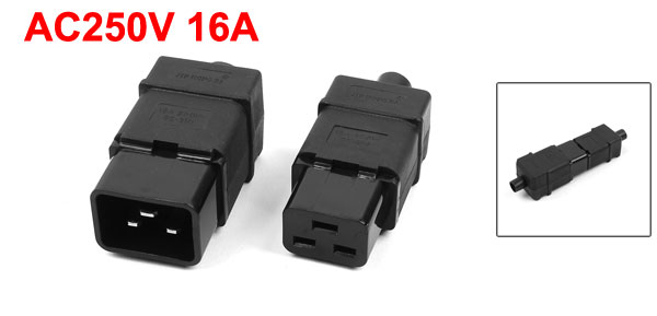 Product Name IEC 320 Connector Plug Model SS-810 Socket Model SS-809 Rating AC250V, 16A Insulation Resistance>=100M Ohm Withstand Voltage ≥AC 2000V/min Insertion Force 5-30N Plug Size 83 x 35 x 27mm/3.3" x 1.4" x 1.1"(L*W*T) Socket Size 82 x 38 x 35mm/3.2" x 1.5" x 1.4"(L*W*H) Wire Hole Dia 11mm/0.43" Material ABS Main Color Black Net Weight 107g Package Content 1 x IEC 320 C19 Plug