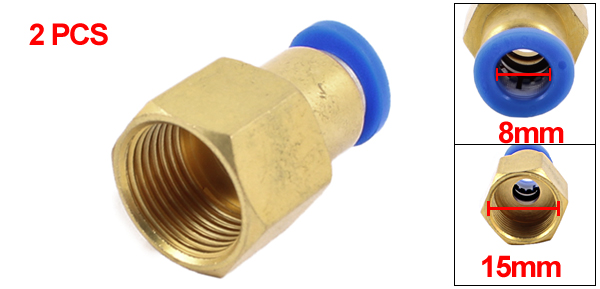 Industry 8mm Dia Hole to 15mm Female Threaded Push in Quick Fittings 2Pcs