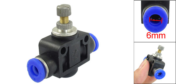 Product Name Pneumatic Speed Controller Inner Diameter (Blue End) 6mm / 0.24" Total Size 49 x 41 x 15mm / 1.9" x 1.6" x 0.6" (L*W*T) Main Material Plastic, Metal Color Blue, Black, Silver Tone Weight 29g Package Content 1 x Speed Controller - Reviews