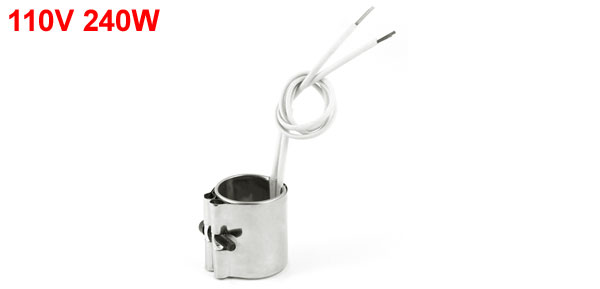 Product Name Band Heater Material Metal Power 240W Voltage 110V Band Size 40 x 50 mm/ 0.6" x 2"(Inside Dia.*H) Wire Length (Each) 32cm / 12.6" Color White, Silver Tone Net Weight 103g Package Content 1 x Band Heater - Reviews