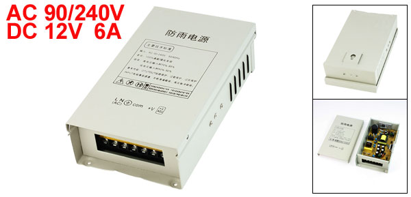 Product Name Rainproof Power Supply Application for LED Light Input AC 90/240V, 50/60Hz Output DC 12V 6A Size 18 x 10.5 x 5cm/ 7" x 4.1" x 2"(L*W*T) Shell Material Metal Color Gray Net Weight 551g Package Content 1 x LED Rainproof Power Supply - Reviews