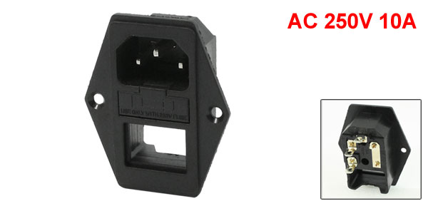 Product Name Male Power Plug Power Supply AC 10A 250V Inlet Plug Type IEC 60320 C14 Terminals Number 3 Fit Mounting Hole Size 48 x 28mm / 1.9" x 1.1" (L*W) Fit Fuse Size 20 x 5mm / 0.78" x 0.19" (L*D) Mouting Screw Hole Dia 3mm / 0.12" Mouting Screw Hole Distance 40mm / 1.57" (center to center) Empty Hole Size 20 x 155mm / 0.8" x 06" (L*W) Total Size(Approx) 60 x 50 x 22mm / 2.4" x 2" x 0.9" (L*W*T) Color Black Weight 22g Package Content 1 x Male Power Plug - Reviews