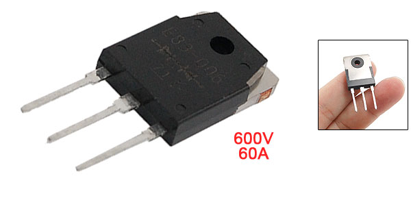 Product Name Schottky Barrier Diode Model No. E83-006 Drain Source Voltage 600V Drain Current 60A Mounting Hole Diameter 3.5mm/ 0.14" Pin Size 14 x 5mm/ 0.55" x 0.2" ( L* Pitch) Total Size 35 x 15 x 5mm/ 1.4" x 0.59" x 0.2" (L*W*H) Weight 6g Package 1 x Schottky Barrier Diode - Reviews