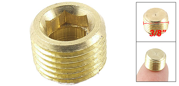 Product Name Hex Head Pipe Plug Color Gold Tone Material Metal Thread Diameter 9.5mm/ 3/8" Hex Side to Side Diatance 5.3mm/ 0.208" High 7mm/ 0.275" Net Weight 42g Package Content 1 x Hex Head Pipe Plug - Reviews