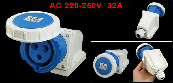 Product Name IEC309-2 Industrial Socket Socket Type 2P+E Degree of Protection IP67 (Splash Proof) Rated Current 32A Rated Voltage AC 220-250V Size 21 x 8 x 9cm / 8.3" x 3.1" x 3.5" (L*W*H) Installing Hole Diameter 4.5mm / 0.13" Hole Distance(center) 7 x 5cm / 2.7" x 2"(L*W) Casing Material Plastic Color Blue, White Net Weight 365g Package Content 1 x IEC309-2 Industrial Socket - Reviews
