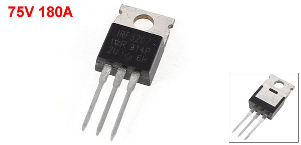 Product Name NPN Transistor Model No. IRF3207 Mounted Type Through Hole LD 180A VDSS 75V Mounting Hole Diameter 3.6mm / 0.14" Pin Length 14mm / 0.79" Total Size 29 x 10 x 4mm /1.1" x 0.39" x 0.16" (L*W*H) Main Material Silicon, Metal Main Color Black, Silver Tone Weight 3g Package 1 x NPN Transistor - Reviews