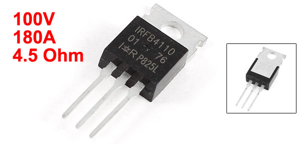 Product Name MOS Power Transistor Model No. IRFB4110 Pin Quantity 3 Drain Source Voltage 100V Drain Current 180A Package Type TO-220 Resistance 4.5 Ohm Mounting Hole Diameter 3.6mm/ 0.14" Total Size 29x 10 x 4mm/1.1" x 0.39" x 0.16" (L*W*H) Weight 3g Package 1 x MOS Power Transistor - Reviews