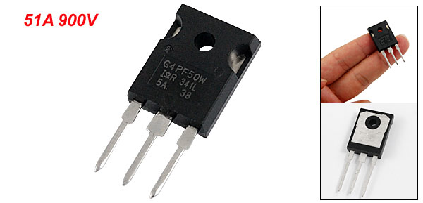 Product Name Insulated Gate Transistor Model No. IRG4PF50W Collector Current 51A Collector-Emitter Voltage 900V Pin Length 15mm/0.59" Hole Diameter 3.5mm/0.13" Body Dimension 20 x 15 x 5mm/0.78" x 0.59" x 0.2"(L*W*T) Net Weight 6g Package Content 1 x IGBT - Reviews