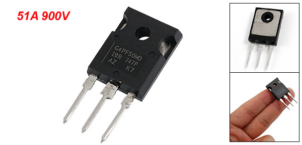 Product Name Insulated Gate Transistor Model No. IRG4PF50WD Collector Current 51A Collector-Emitter Voltage 900V Pin Length 15mm/0.59" Hole Diameter 3.5mm/0.13" Body Dimension 20 x 15 x 5mm/0.78" x 0.59" x 0.2"(L*W*T) Net Weight 6g Package Content 1 x IGBT - Reviews