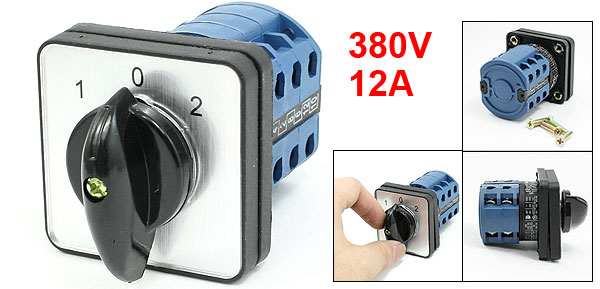 Ith 20A 1-0-2 Position 12 Screw Terminals Rotary Cam Combination Switch Black