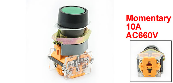 Ith DPST NO+NC Lamp Momentary Push Button Switch Green 660V Ui 10Amp