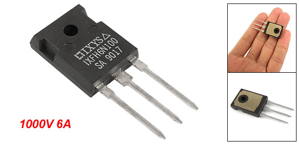 DetailsIXFJ6N100 3 Terminals FET Transistor N-MOSFET 1000V 6A  Product Name Mosfet Model.No IXFJ6N100 Vdss 1000V Current - Continuous Drain 6A Pin Length 20mm/0.78" Hole Diameter 3.5mm/0.13" Body Dimension 20 x 15 x 5mm/0.78" x 0.59" x 0.19"(L*W*T) Weight 7g Package Content 1 x MOSFET Transistor