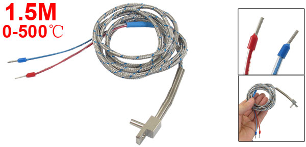 Product Name Thermocouple Transfer Type J Message Type Earth Temperature Range 0 to 500 Celsius Probe Size 11.5mm x 4mm/ 0.45" x 0.16" (L*D) Mounting Hole Dia 4.5mm/ 0.18" Wire Length 1.5M / 4.9Ft External Material Plastic, Metal Terminal Quantity 2 Color As Picture Shown Weight 41g Package Content 1 x Thermocouple - Reviews