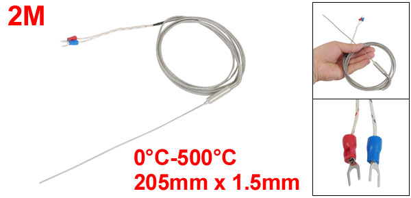Product Name Thermocouple Transfer Type J Message Type Earth Temperature Range 0 to 500 Celsius Probe Size 205 x 1.5mm / 8.1" x 0.06" (L*D) Wire Length 2M / 6.6Ft External Material Plastic, Metal Fork Terminal Quantity 2 Fork Terminal Spacing 4mm / 0.157" Color As Picture Shown Weight 46g Package Content 1 x Thermocouple - Reviews