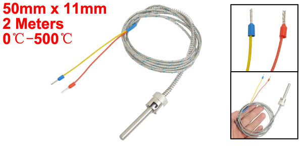 J Type 50mm x 11mm Temperature Controller Earth Thermocouple Probe 2M