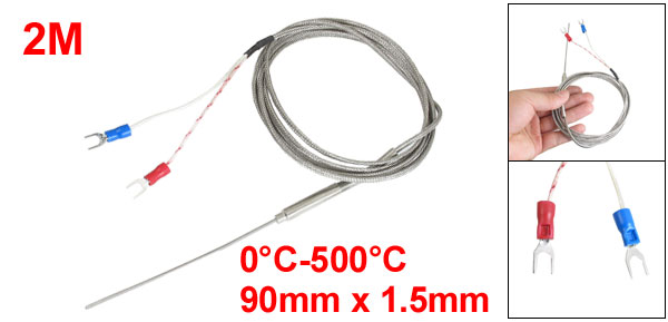 Product Name Thermocouple Transfer Type J Message Type Earth Temperature Range 0 to 500 Celsius Probe Size 90 x 1.5mm / 3.5" x 0.06" (L*D) Wire Length 2M / 6.6Ft External Material Plastic, Metal Fork Terminal Quantity 2 Fork Terminal Spacing 4mm / 0.157" Color As Picture Shown Weight 37g Package Content 1 x Thermocouple - Reviews