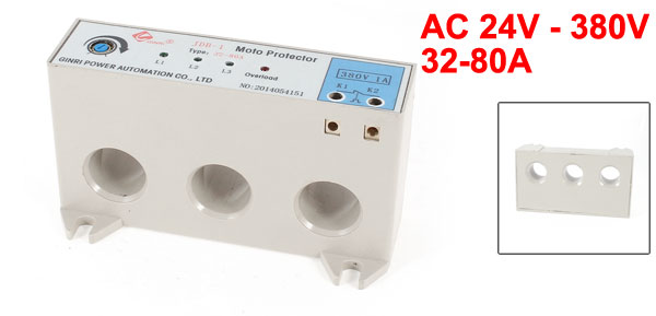 Product Name Motor Protector Type JDB-1 Reset Time 60 ± 10s Work Mode Uninterrupted Work Mode Applicable Voltage AC 24V - 380V / 45 ~ 60 Hz Current Adjustment Scope 32-80A Applicable Motor Power 16 - 40KW Wire Hole Dia. 20mm/0.79" Control Current of Output Interface 1A/380Vac Environment Temperature -10C - +50C Relative Humidity <=90% Atmospheric Pressure 80Kpa-110Kpa Altitude no more than 200m Total Size 12.4 x 6.8 x 4.4cm/4.9" x 2.7 " x 1.7"(L*W*H) Weight 194g Package Content 1 x Motor Protector