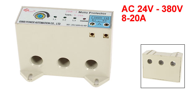 Product Name Motor Protector Type JDB-1 Reset Time 60 ± 10s Work Mode Uninterrupted Work Mode Applicable Voltage AC 24V - 380V / 45 ~ 60 Hz Current Adjustment Scope 8-20A Applicable Motor Power 4 - 10KW Wire Hole Dia. 11mm/0.43" Control Current of Output Interface 1A/380Vac Environment Temperature -10C - +50C Relative Humidity <=90% Atmospheric Pressure 80Kpa~110Kpa Altitude no more than 200m Total Size 9.2 x 6.3 x 4.2cm/3.6" x 2.5" x 1.7"(L*W*H) Weight 167g Package Content 1 x Motor Protector