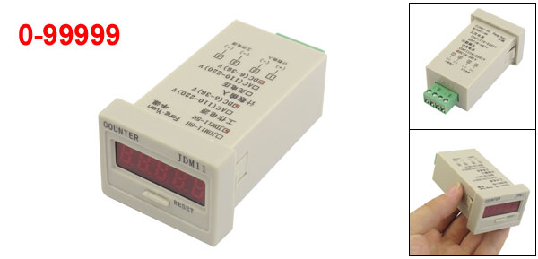 Product Name Digital Counter Model JDM11-5H Digit Display 5 Voltage DC 24V Count Signal DC 24V Range 0-99999 External Material Plastic Color Gray Mounting Size 3.8 x 2.7cm/1.5" x 1.1 "(L*W) Total Size 4.6 x 3.5 x 9cm/1.8'' x 1.4'' x 3.5'' (L*W*H) Net Weight 39g Package Content 1 x Digital Counter - Reviews