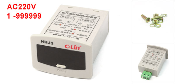 Product Name Electronic Counter Relay Model JDM11-6H Power AC220V Counting Range 1 -999999 Contacts Capacity AC 220V 3A ( resistive load) Reset Type Panel Reset Mounting Type Panel Mount Panel Size 9 x 4.4 x 5.8m/ 3.5" x 1.73" x 2.3" (L*W*T) Mounting Hole Size 5 x 2.5cm/2" x 1"(L*W) Color Gray, Green Material Plastic, Metal Net Weight 83g