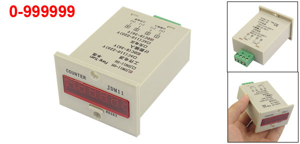 Product Name Digital Counter Model JDM11-6H Digit Display 6 Working Voltage DC 24V Count Signal DC 24V Range 0-999999 External Material Plastic Color Gray Mount Hole Diameter 3mm/0.12" Mounting Size 5.1 x 2.6cm/2" x 1"(L*W) Total Size 5.6 x 4 x 8.6cm/2.2'' x 1.6'' x 3.4'' (L*W*H) Net Weight 46g Package Content 1 x Digital Counter - Reviews