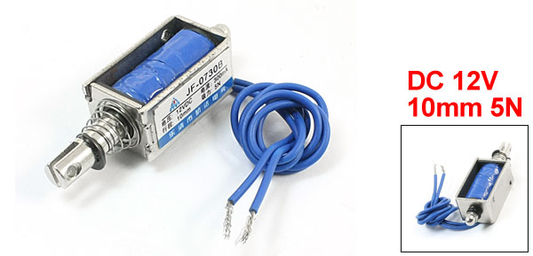 Product Name Solenoid Electromagnet Model JF-0730B Rated DC 12V 300mA Type Pull Force & Stroke 10mm 5N Body Size 30 x 16 x 17mm/1.2" x 0.63" x 0.67"(L*W*H) Plunger Bar Size 56 x 3mm/2.2" x 0.12"(L*D) Screw Hole Diameter 2mm/0.08" Plunger Hole 2.5mm/0.1" Wire Length 21cm/8.3" Material Metal, Electronic Parts Weight 37g Package Content 1 x Solenoid Electromagnet - Reviews