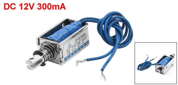 Product Name DC Solenoid Electromagnet Model JF-0730B Material Metal, Electronic Parts Rated Voltage DC 12V Rated Current 300mA Type Pull Force& Stroke 10mm, 5N