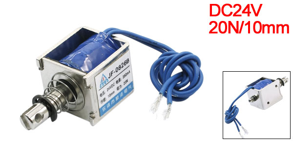 Product Name DC Solenoid Electromagnet Model JF-0826B Rated Voltage DC 24V Type Pull Push Rated Current 350mA Force & Stroke 20N/10mm