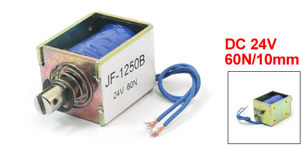 Product Name DC Solenoid Electromagnet Model JF-1250B Rated Voltage DC 24V Type Pull Push Force & Stroke 60N/10mm