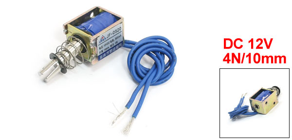 Product Name DC Solenoid Electromagnet Model JF-0520 Rated Voltage DC 12V Type Pull Rated Current 300mA Force & Stroke 4N/10mm