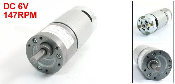 Product Name DC Geared Motor Model JGB37-550 No Load Speed 147RPM Voltage DC 6V No Load Current 0.8A Torque 10kg.cm Gearbox Size 28 x 37mm/1.1" x 1.5"(L*D) Mounting Screw Hole Diameter 3mm/0.12" Shaft Size 6mm/ 0.24", 3mm/ 0.12" Motor Part Size 57 x 38mm/ 2.2" x 1.5"(L*D) Main Color Silver Tone Material Metal Weight 336g Package 1 x DC Geared Motor - Reviews