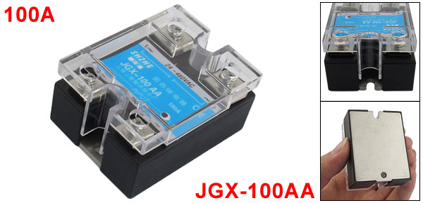 Product Name Solid State Relay Type JGX-100AA Material Metal, Plastic Rated Load Current 100A Input AC 80-250V Output AC 24-480V Mounting Hole Size Small Dia:4.5mm/0.2"