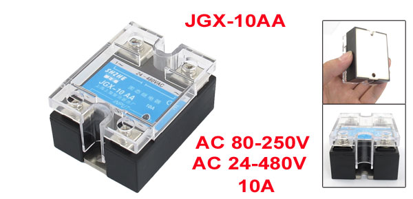 Product Name Solid State Relay Type JGX-10AA Material Metal, Plastic Rated Load Current 10A Input AC 80-250V Output AC 24-480V Mounting Hole Size Small Dia:4.5mm/0.2"