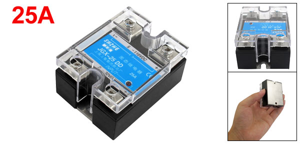 Product Name Solid State Relay Type JGX-25DD Material Metal, Plastic Rated Load Current 25A Input DC 3-32V Output DC 5-110V Mounting Hole Size Small Dia:4.5mm/0.2"